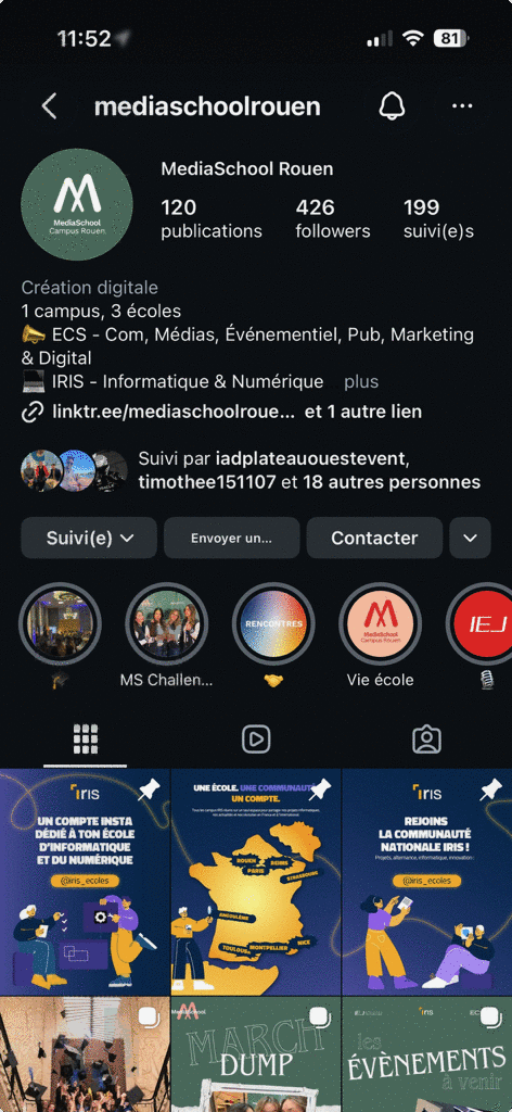 | 15 | Distribution flyers lycées de Rouen | Toutes promos | 01/06/27 | 14/06/27 | 2 sem. | Équipes mobiles, 5 lycées cibles |